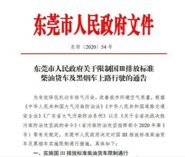 除高速公路外,全天禁止黑煙車在東莞市內(nèi)道路通行。