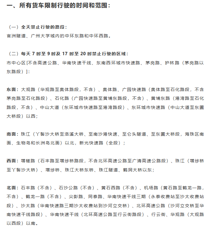 自10月1日起,廣州將實(shí)施最新的市內(nèi)貨車限行政策,具體如下: